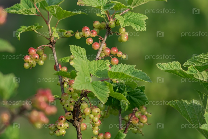 Крупный план куста красной смородины в саду