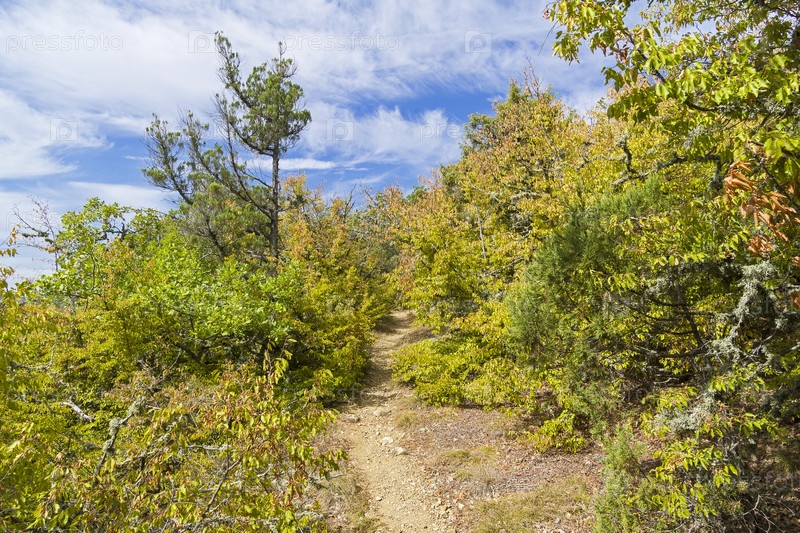 Тропа в горном лесу. Крым. Солнечный день в сентябре