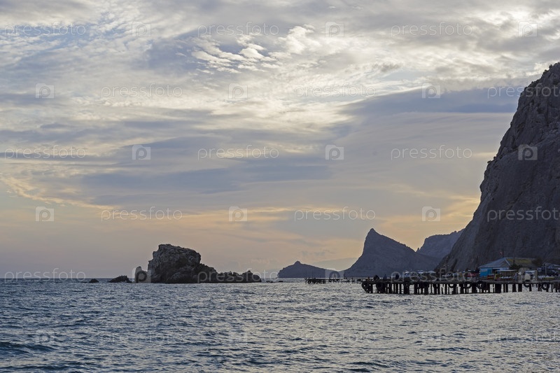 Вечер в бухте курортного города Судак. Крым