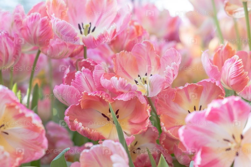Красивые цветущие розовые тюльпаны в весеннем саду