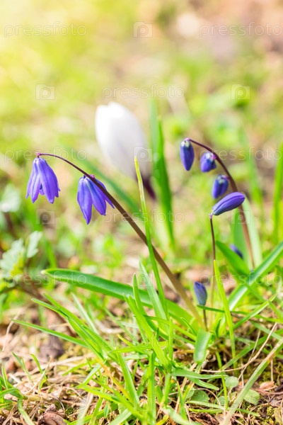 Blue Scilla siberica или цветы сибирского лука. первые весенние цветки в саду