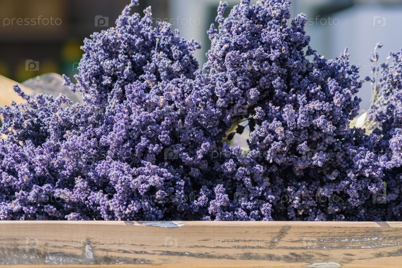 Букет цветов лаванды на старом деревянном столе, крупным планом