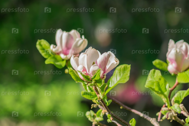 Крупный план цветущих цветов магнолии в саду