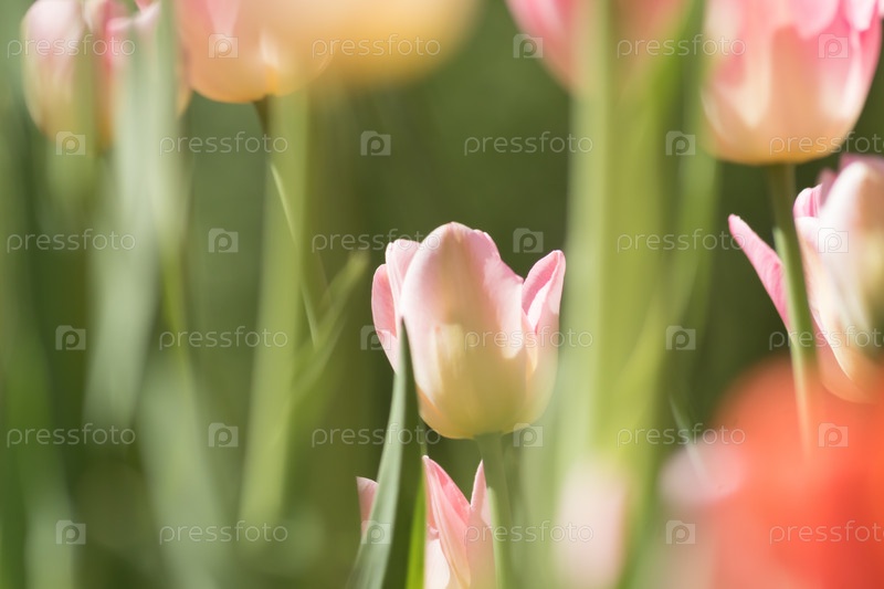 Крупный план свежего нежного цветущего розового тюльпана