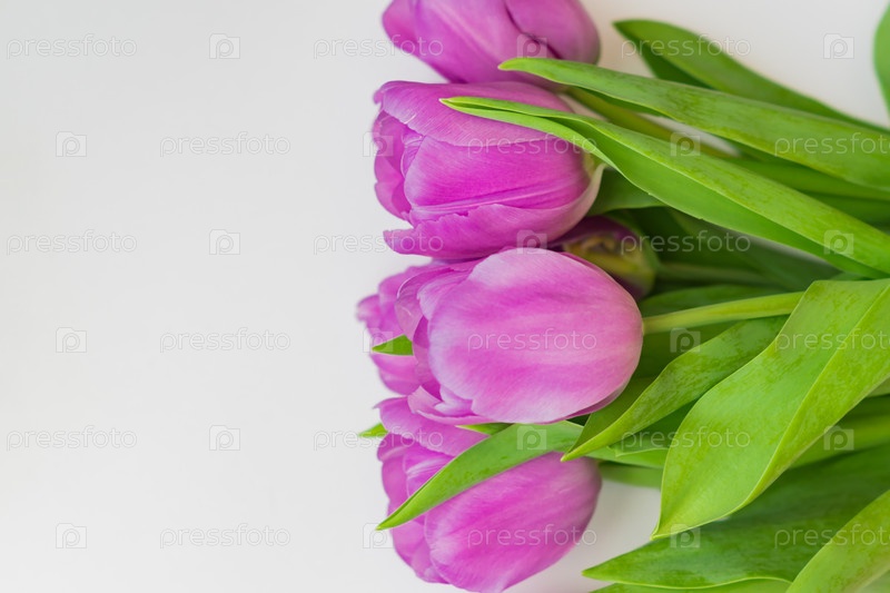 Белые и фиолетовые цветущие тюльпаны. цветочный фон