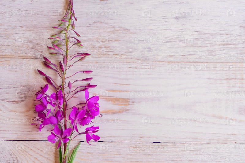 Цветки Chamaenerion на белом деревянном фоне