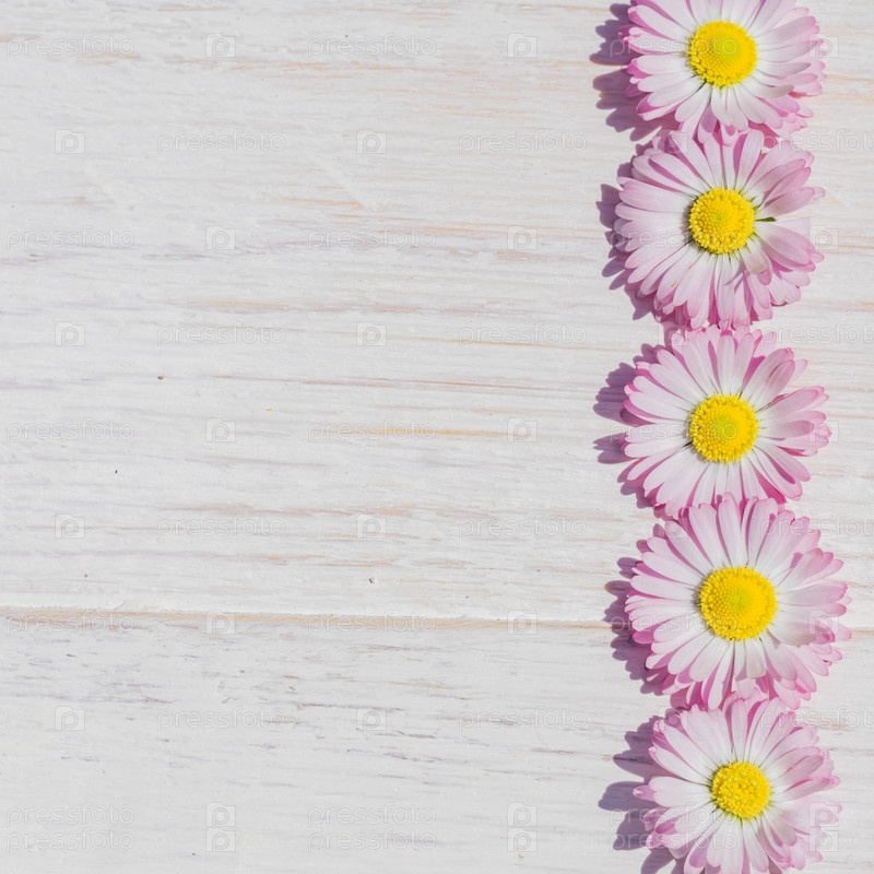 Розовые цветы ромашки на фоне деревянного стола с копией пространства