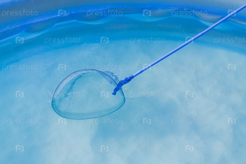 Уборка садового бассейна. Скиммерная сеть крупным планом