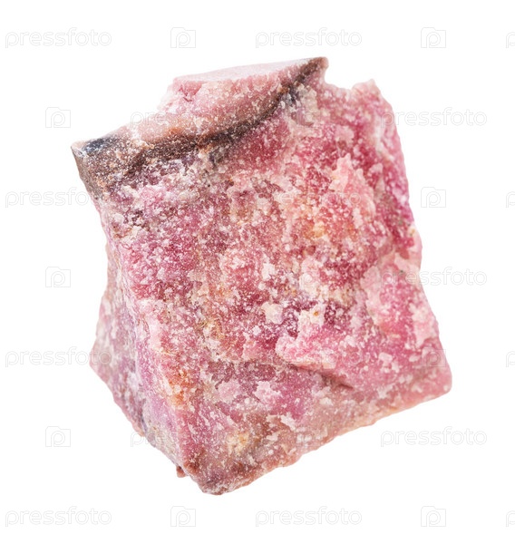 Грубая родонитовая скала на белом фоне
