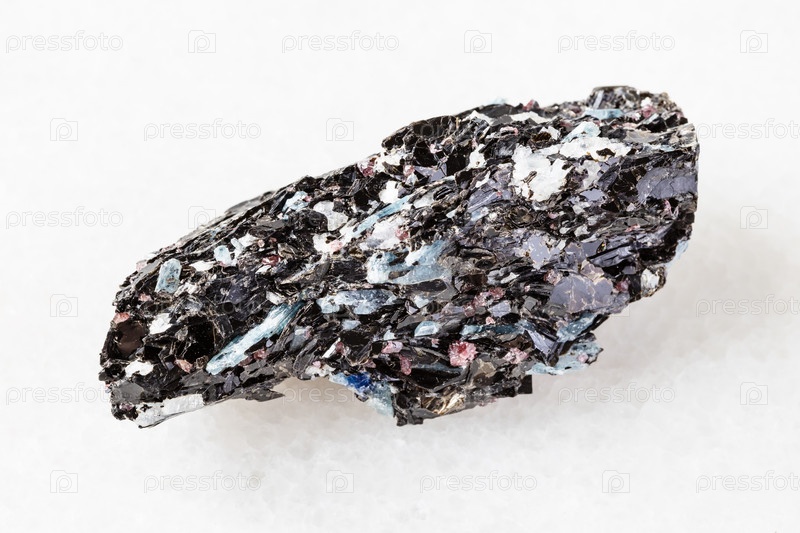 Необработанная биотитовая порода с кристаллами кианита на белом