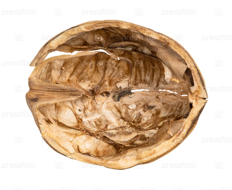 Изолированный вид сверху на пустую скорлупу грецкого ореха