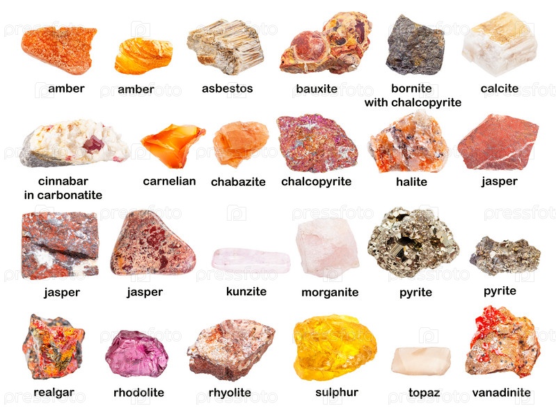 Набор различных неполированных красных камней с именами