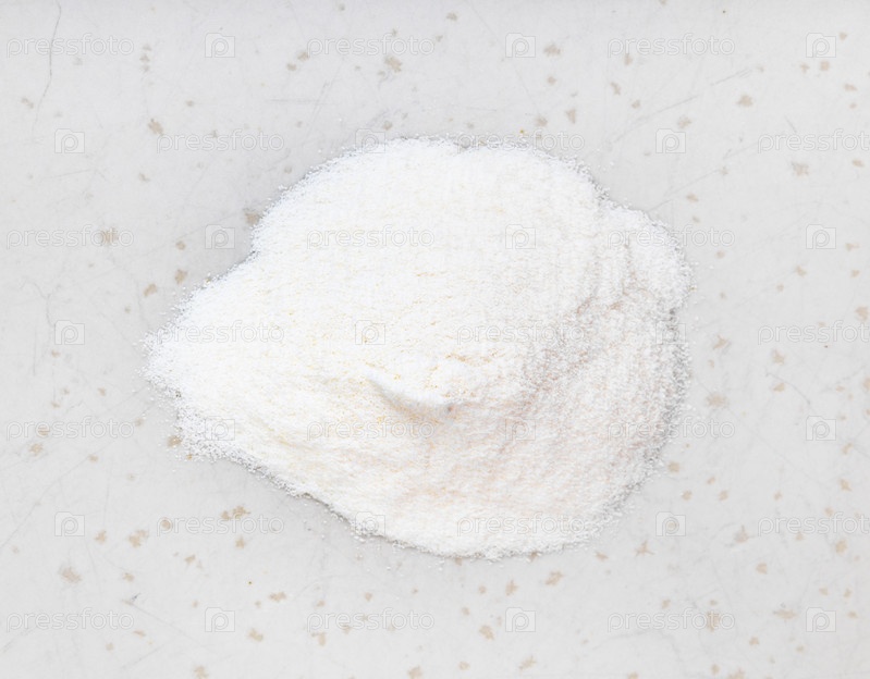 Вид сверху на кучу агарового порошка крупным планом на сером