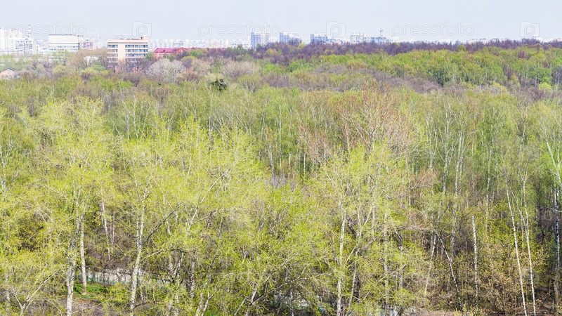 Парк с молодой листвой и жилой район
