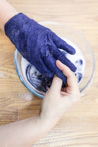 Мастер адаптирует размер войлочной перчатки
