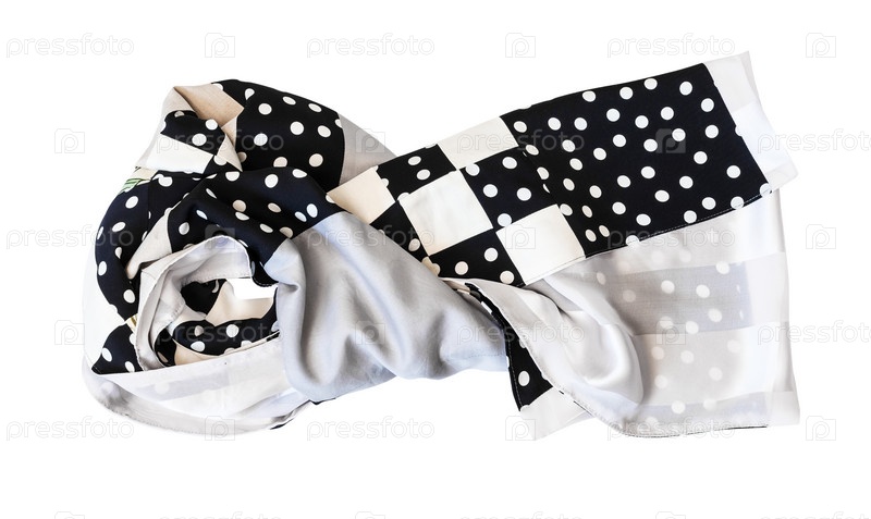 Вязаный шарф в технике пэчворк из ткани в горошек