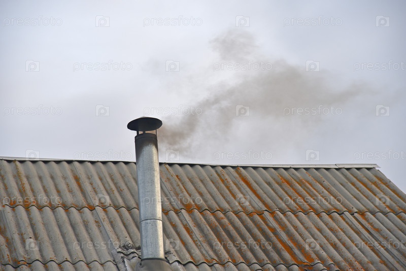 Дымящаяся железная труба старого дома вечером