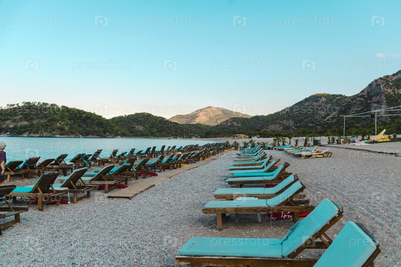 Красивый пейзаж с пляжем и морем. Концепция летнего отдыха
