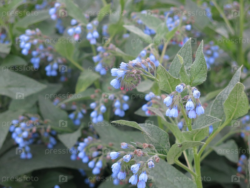 Цветки голубого окопа (Symphytum) цветут летом