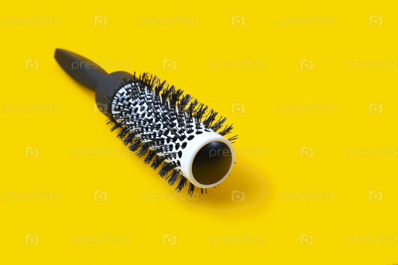 Профессиональная черная щетка для волос на желтом фоне