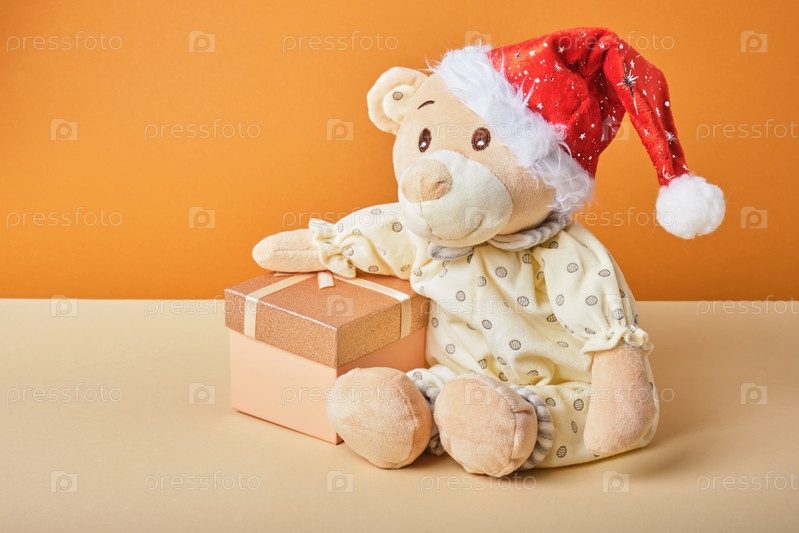Милый плюшевый мишка в шапке санта-клауса