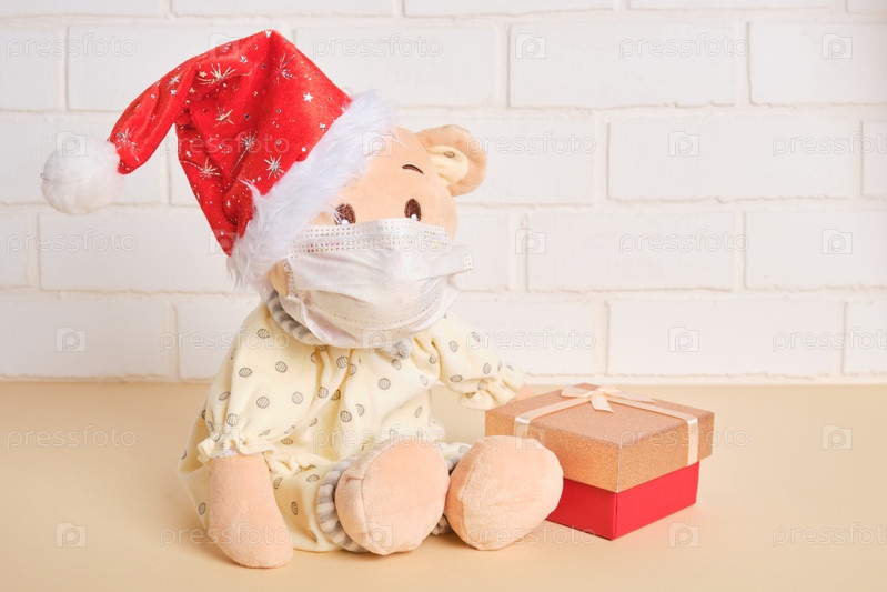 Милый плюшевый мишка в шапке санта-клауса