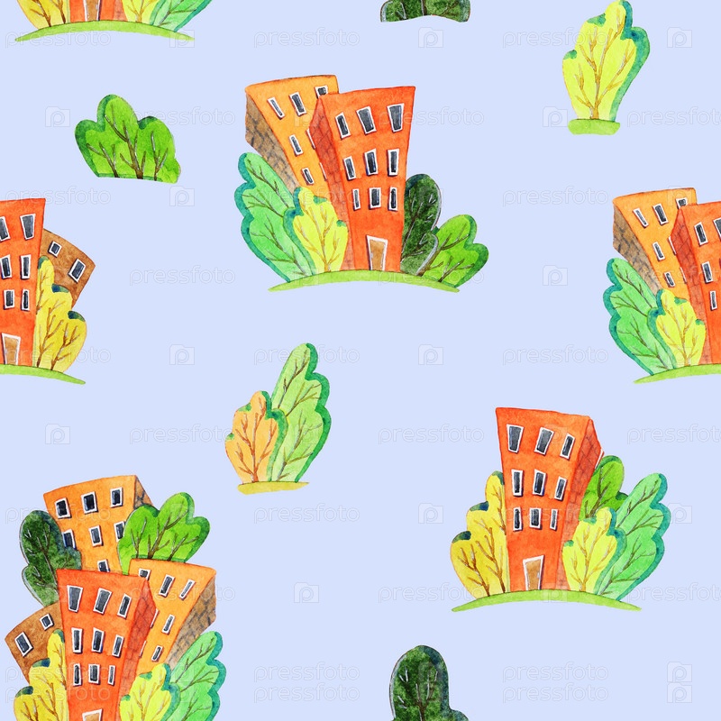 Красные дома. Бесшовный узор. Акварель (3)