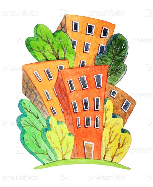 Красные дома. Акварель