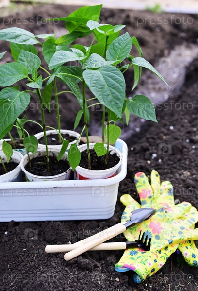 Рассада перца готова к пересадке. Концепция ухода за растениями