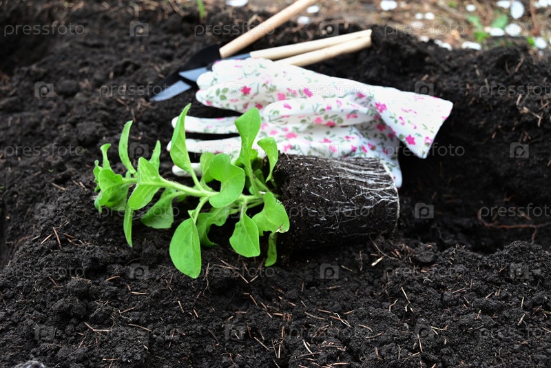 Рука кладет землю под петунию Концепция ухода за растениями и выращивания органических продуктов
