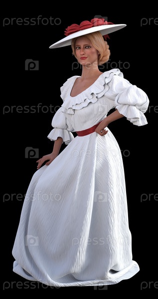 3D Женщина в винтажном белом платье