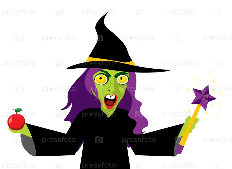 Зеленая ведьма с яблоком