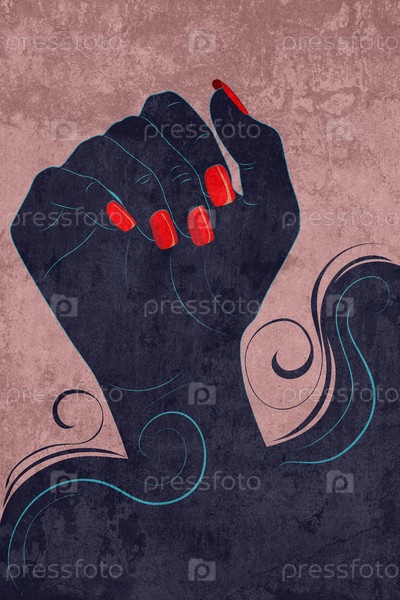 Силуэт руки с красными ногтями и завихрениями гранжа