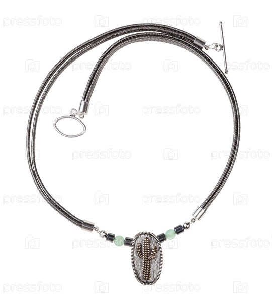Колье ручной работы из кожаного шнурка и подвески