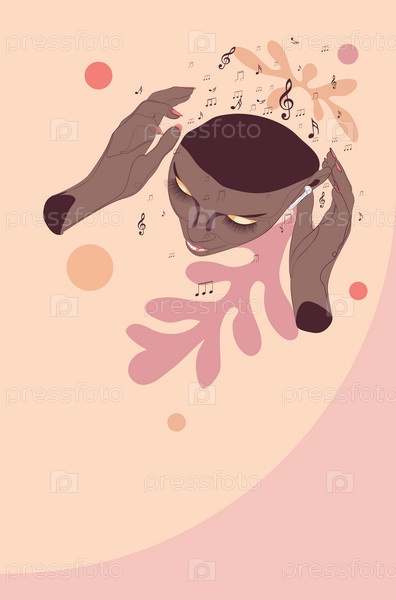 Голова девушки с нотами вид сверху