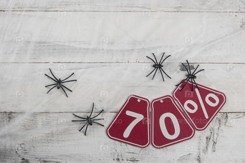 Семидесятипроцентная скидка на фоновый ценник Хэллоуина на деревенском старом деревянном фоне