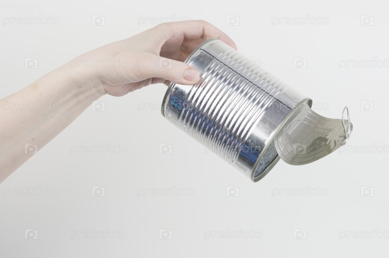 Женская рука держит пустую консервную банку. Перерабатываемые отходы. Переработка, повторное использование, удаление мусора, ресурсы, окружающая среда и концепция экологии