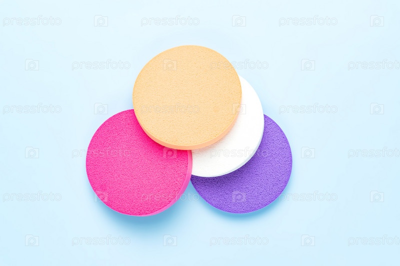 Набор разноцветных круглых спонжей для нанесения жидкой основы для естественной коррекции кожи. Продукт для визажа