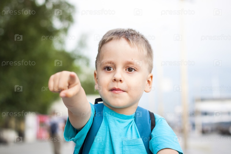 Мальчик в синей футболке с рюкзаком за спиной. Путешествие. Лицо выражает естественные радостные эмоции. Не постановочные фото с натуры