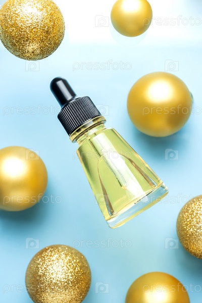 Роскошный косметический продукт, антивозрастное, увлажняющее и коллагеновое масло для лица в подарок - концепция красоты, косметики и ухода за кожей в новогоднем стиле