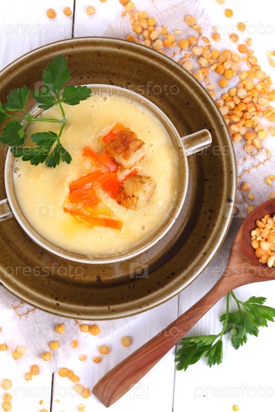 Гороховый суп на деревянном столе