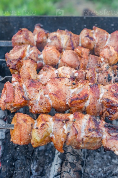 Крупный план мяса на гриле на открытом воздухе барбекю