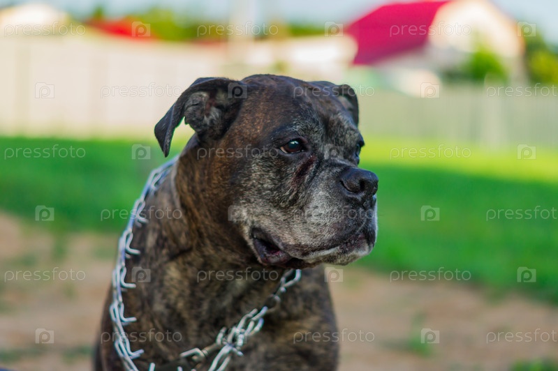 Портрет старого немецкого боксера на улице