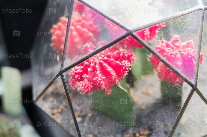 Мини-суккулентный сад в стеклянном террариуме, крупным планом