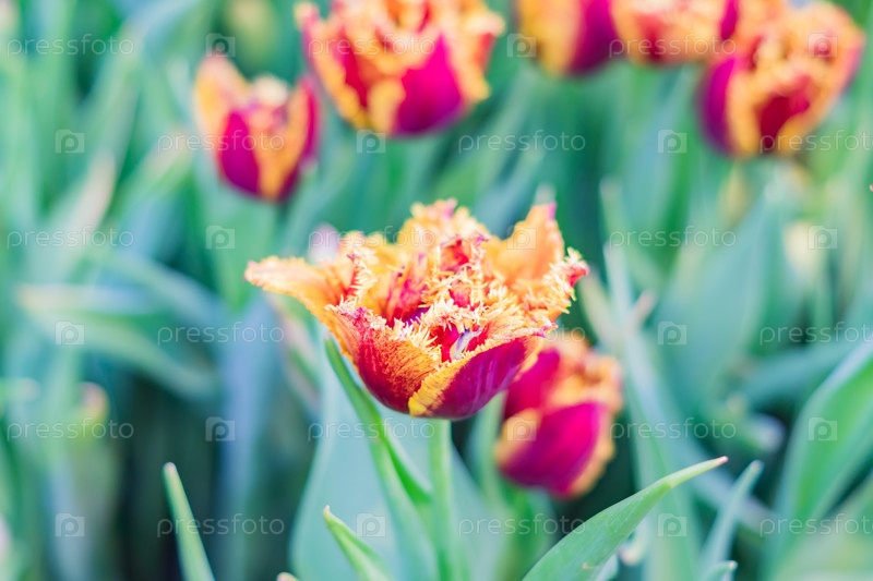 Крупный план свежего нежного цветущего разноцветного тюльпана
