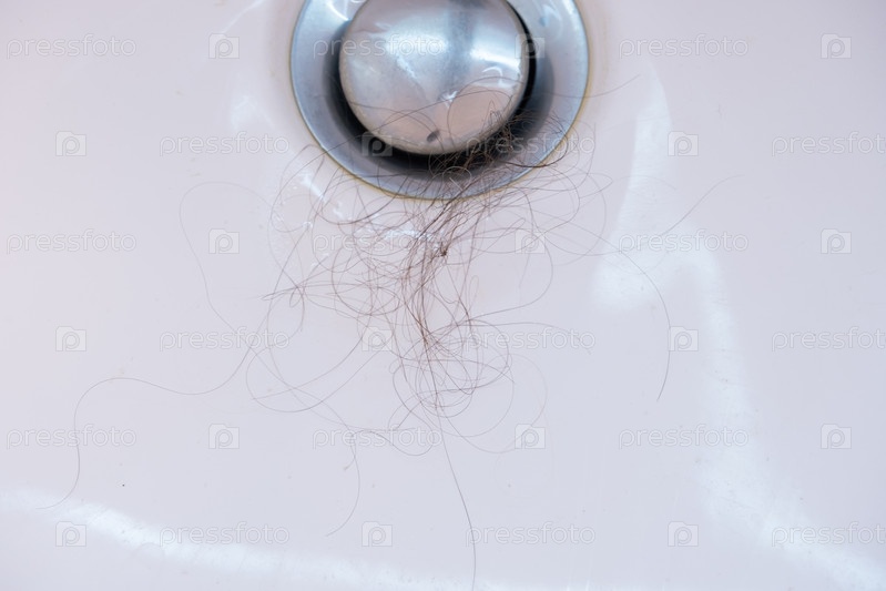 Выпавшие волосы возле пробки раковины. Проблема облысения