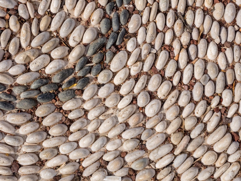 Фрагмент тротуара из речной круглой гальки в общественном парке, Анталия, Турция. Ландшафтный дизайн