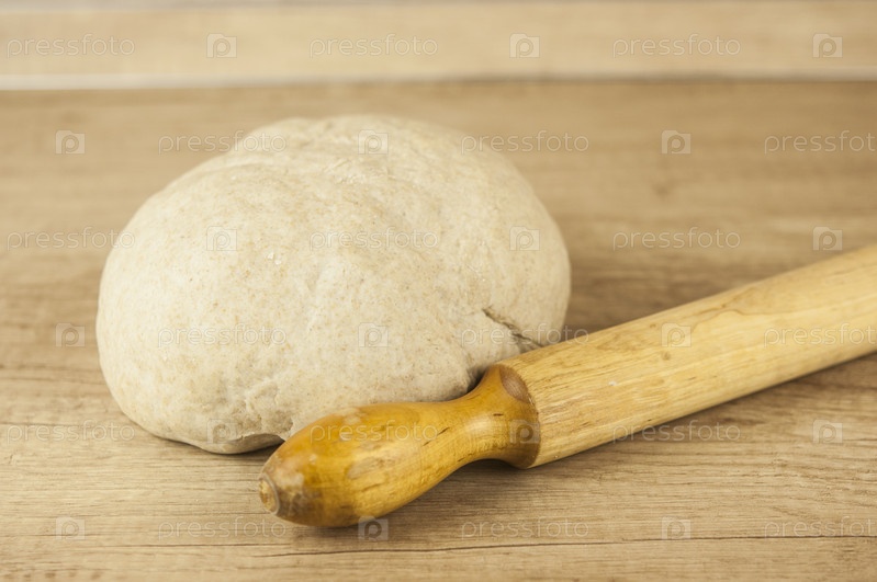 Домашнее тесто для пиццы со скалкой на деревянном столе