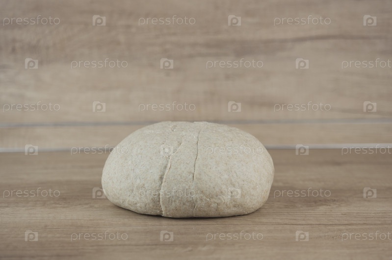 Поднявшееся или проверенное дрожжевое тесто для хлеба или пиццы на деревянной поверхности