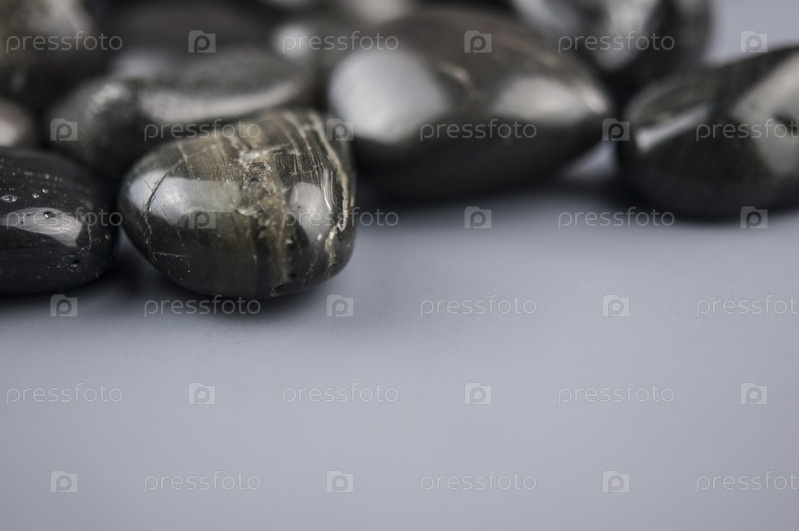 Ряд камней дзен на фоне серой бумаги